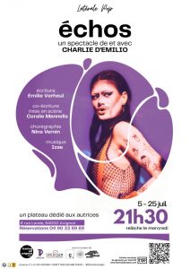 Échos est la première pièce musicale portée par un drag king en Avignon ! “Charlie est né d’une peur, son corps c’est mon corps, sa……