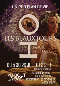 Winnie, enterrée dans le ventre de la terre, partage sa solitude avec celle de Willie, son compagnon, dans une danse de mots et de silence,……