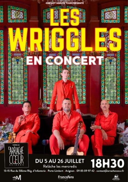 Humour décalé et énergie communicative, Les Wriggles sont sur les routes pour chanter des chansons d’humour, des tranches de quête absolue. Ils racontent le monde comme ils le voient : ça fait rire… ou grincer des dents… ou pleurer.